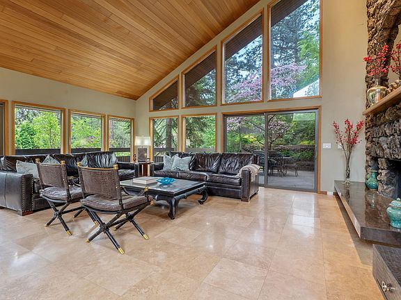 Escape to your own private oasis in this private Rockwood/Hutton Stunner. Custom Jon Saylor contemporary home situated on almost .4 of an acre of lush landscape. Open the double Copper front doors and be greeted by expansive floor to ceiling windows, soaring ceilings that provide panoramic views of the landscaped yard & high end finishes & this is just the beginning. Calling all foodies, this gourmet kitchen is a dream. Featuring high end appl, custom walnut cabinetry & plenty of counter space. Travertine flrs, limestone stairs, custom walnut bookshelves, glass railings, custom lighting are just a few of the fantastic amenities. Enjoy the roaring fireplace in the all glass living & dining rm. Primary suite has another fireplace w/newly remodeled gorgeous ensuite bathroom w/huge walking closet. 2 family rooms that both exit to the outdoors, either private deck, sit in the hot tub & enjoy the basalt cropping & perennial gardens or out to the patio w/rocked pathway to a secret garden. This home has everything!