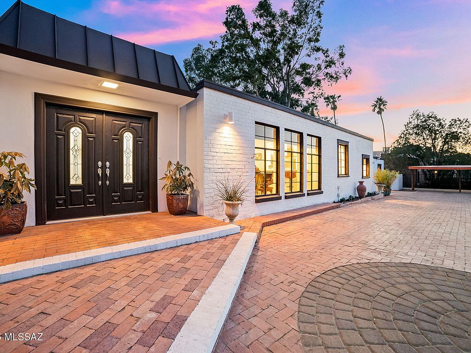 Seller to entertain/counter offers from $900k-$950k. Zen Retreat in Historic Blenman-Elm. Discover the allure of a meticulously remodeled mid-century modern masterpiece, boasting over $200k in luxurious upgrades that redefine elegance and comfort. This 2,489 sqft estate offers a free-flowing floor plan with a spacious great room featuring a cozy fireplace and abundant natural light. The gourmet kitchen boasts white cabinetry, quartz counters, and stainless steel appliances, perfect for culinary enthusiasts. The expansive owner's suite includes a beautifully appointed master bath with clawfoot bathtub, providing a serene retreat. Beyond the main residence, a one-bedroom guest house with private entrance, living room, kitchen, and bath offers an ideal rental opportunity or space for guests. The property showcases a circular driveway, a two-car garage, and a sparkling pool with an endless current system, all set amidst zen gardens and a tranquil water feature. Located just a short walk from Banner Hospital, the Arizona Inn, and the University of Arizona.