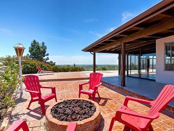 This single level home at the end of a hilltop cul-de-sac features absolutely jaw-dropping, unobstructed panoramic views of SoCal. Relax with a sundowner on the back patio, soaking in the revitalizing energy of the setting sun while its glow paints the sky above in vibrant hues. As twilight fades to dark, the carpet of twinkling city lights rolled out below offers a mesmerizing vista, broken only by the spectacular Disney fireworks show as a nightly treat. Host an incredible party with friends who will love the new, open concept kitchen featuring contemporary cabinetry, a center island, double oven, and lots of gleaming stone counter space. The master bedroom is located on the view side of the house, setting the stage for a peaceful start to every new day, looking out at the city all the way to the ocean on the horizon. The 750sf enclosed patio is the ultimate all-season hang out space to maximize the amazing views. The single level floorplan makes this property ideal for retirees and those looking to downsize who want an incredible view in a convenient location that requires no curvy road driving for access. Low maintenance landscaping is perfect for the "lock and go" lifestyle of frequent travelers. Two car, direct access garage. No HOA. No Mello-Roos.