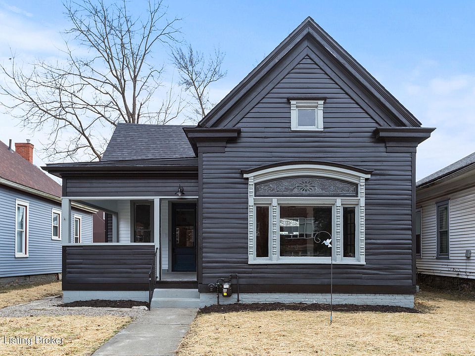 This 1929 queen Anne Victorian home has had a top to bottom renovation. Every detail of the home was planned out to blend the past with the Present,down to the color choices. The exterior is painted SW Tricorn black with SW Tin Lizzy Gray. Ford was producing the Tin Lizzy ,only available in black,in 1929.The door chandelier was created using the original entry door to the kitchen. The sinks and claw foot tub are original to the home and have been refinished in an enamel.The craftsman light and fireplace mantel in the front bedroom are also original to the home.The kitchen features white cabinetry and butcher-block counter tops. The bathrooms are finished in black hex tile and subway tile also giving a nod to the past. The second floor attic is massive and ready for someone to create their own 2nd floor design. The HVAC including ducts are new. The electric was updated with a new panel/service, wire etc. The roof is a new 30 year dimensional shingle. Luxury plank flooring (original Hardwood under could be refinished if desired) There is a street curb cut to add a drive way and garage in the rear. Great opportunity to own a queen anne on one of New Albany's finest streets! Schedule your private showing today!