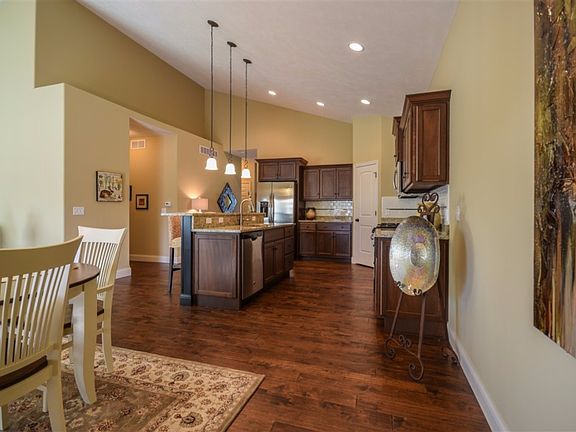 Immaculate 2 bedroom, 2 bathroom DETACHED zero-lot in the Villas at Eagle View South. Low maintenance living - monthly fee covers lawn care and snow removal. Everything you need on ONE floor! Master suite with large walk-in closet, master bath, and adjacent laundry room. Beautifully designed kitchen - stainless appliances, granite counters, tile back splash, and island with breakfast bar. Open floorplan, vaulted ceilings and hardwood floors. The centerpiece of the living room is the gas fireplace with a beautiful stone surround. The dining room opens to a covered deck creating a private retreat. Custom window treatments throughout. All appliances remain. Full, unfinished basement with bathroom rough-in. Agent interest.