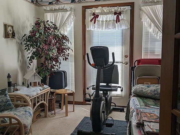 Two bedroom, one full and one 1/2 half bath, and flagstone patio on large lot in highly desirable Whispering Ponds subdivision. Home has walk in closets, stained woodwork, cathedral ceiling in living room. with sunroom leading to flagstone patio which is fenced for privacy. Nicely landscaped and very private in rear of home.