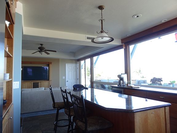 This is a Wow property with 4+ bedrooms, 3 full bathrooms and spectacular sit down Ocean Views. Located only blocks from the beach, this well maintained home is a surprise. Solar Panels cover most, if not all, of the electric bill. This home has a very spacious and bright - Panoramic Ocean View high end Chef's kitchen with all the bells and whistles - 6 burner Wolf stove, giant french door fridge, wine fridge, large island, lots of gorgeous wood custom built cabinets, lots of granite counter top space and remote blinds on the large View windows. There are two master suites with really nice full bathrooms, one on the main floor with a fireplace and the other is privately situated on the second floor with a private deck, walk in closet, full bath and more panoramic ocean views. The other two bedrooms are on the main floor. One of these bedrooms has an adjoining room which can be used any number of ways. This open concept home has a wet bar in the dining room and the living room has a built in mount for a very large flat screen TV with hidden components and surround sound. For great outdoor space there is a long ocean view deck with a built in gas grill - Wow. But, there is more! The washer and dryer are in the laundry room, there is a soaker tub in the downstairs master, ceiling fans in all of the bedrooms and living room and Electric Central Air Conditioning throughout the entire house. Remember, the solar panels generate a lot of electricity. For the security conscious there is also an 8 camera FLIR security system installed. Extra long one car garage. A great home for relaxing, raising a family and entertaining. Come home to a vacation, walk to the beach, downtown Ocean Beach and shops, eat or play. Truly a quality family home in a very nice neighborhood. Pets may be considered. Available by April 18, 2017. Tenant pays all utilities - Solar Panels cover most of electrical costs