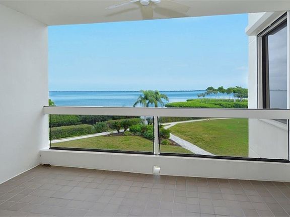 One or more photo(s) has been virtually staged. Amazing panoramic bay view's get your attention as soon as you open the front door of this 2 bedroom/ 2 bath condo located in the resort community of the Longboat Key Club. Highlighted features include a wall of 8' glass sliding doors with electric/manual hurricane shutters for all windows & doors, wood flooring, new air conditioner, new water heater, appliances updated and an open floor plan of neutral colors ready for your personal touch. The 2 in-suite bedrooms, are both private and perfect for you and your guests and the southeastern exposure gives you plenty of sunlight throughout the day and beautiful sunrises every morning. Sit back and enjoy watching the activities of the dolphins and wildlife that surround you, along with a passing boat or two. he gated community of Fairway Bay has many amenities to offer including a kayak launch, new fitness center, 2 heated pools, a large community room, poolside grills, bay side walking trails and tennis courts. The secure mid-rise building highlights open air covered balconies leading to the front door of each residence. As a bonus, a membership to the coveted Bay Isles Beach Club directly on the Gulf of Mexico is also included in your home ownership. Conveniently located close to the shopping plaza you can elect to walk or ride your bike along the private road or sidewalk if you feel energetic. You also find yourself close to shops & restaurants of popular St Armands Circle and a short ride across the bay to the cultural activities of downtown Sarasota.