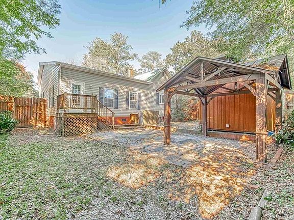 Available September 2024 - Discover the charm of historic Kendall Mill Village in Camden with this 3-bedroom, 2-bath bungalow on a corner lot. Enjoy mornings or evenings on the screened-in front porch, or entertain on the 15x30 outdoor patio with a powered gazebo. The home features original stained hardwood floors, 10 ft. ceilings, and renovated bathrooms, including a guest bath with a skylight and a master bath with slate floors, a double vanity, and a tub/shower combo. The kitchen boasts stainless steel appliances, and a stacked washer and dryer are included. Additional highlights include two powered sheds, concrete driveway, and a fenced backyard for privacy. Heating and air are provided by a gas pack, with natural gas for hot water. All utilities and lawn maintenance are the tenants responsibility and a 1 year minimum lease. Lead based paint disclosure required.