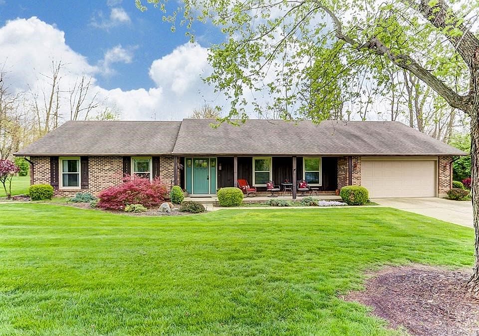 This long time original owner will be sad to leave, but is ready to downsize. As you approach the lovely Craftsman front door and view the cozy covered front porch, you'll envision yourself enjoying a cup of coffee or a beverage with a friend. This spacious ranch has a split floor plan with 3 bdrms on one side and 1 bdrm (can be used as office, etc) on the other side. There are 3 full baths as well. The newer kitchen has gorgeous cherry cabinetry with end panels for that high end look, and a lovely high definition countertop. This home has been very well maintained with many upgrades including a 15 seer Trane HVAC system installed in 2009. Extra insulation was added at the same time for energy efficiency. The lovely 1.33 acre lot is treed around the entire perimeter and is nicely landscaped around the porch, patio, and pavers. The concrete driveway has plenty of extra parking. Butler Township, so no city taxes. Vandalia Butler schools.