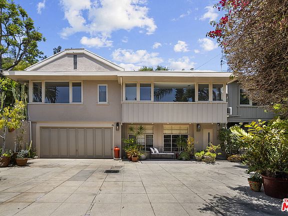 Located on a private, gated street at the top of La Brea Avenue in the Hollywood Hills near Runyon Canyon, this home is a rare opportunity. The 3BR/3BA property consists of an upper level offering serene tree top views from the main house, which features two bedrooms and two bathrooms, while a separate 1BR/1BA guest unit on the lower level has a private entrance next to the two-car garage. The spacious lot of nearly 9,000 square feet has two driveways with parking for an additional five vehicles. The main house has a large living room with a fireplace and French doors to the back yard. The big yard has a shaded patio, mature landscaping, a decorative water feature and a detached yoga studio with a sauna and shower. Although this home is conveniently located near shopping, restaurants, nightlife and recreation in Hollywood, the street's private gate makes this home exclusive and secure. Floorplan shows the Main House is 1,971 SF, Guest Unit is 464 SF and Detached Studio is 288 SF, but measurements may not be deemed reliable and Buyer to verify to their own satisfaction.