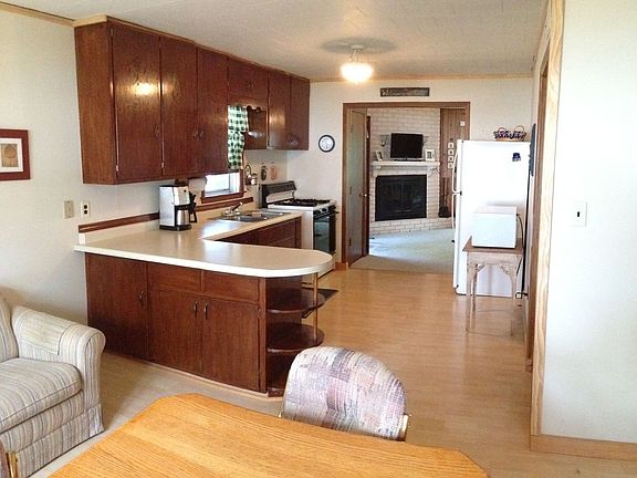 Year round lake home with one level living. 75 ft of perfect, sandy W facing lakeshore. Many updates, inc new windows. One of the biggest lots on the lake. Decks in front and back.