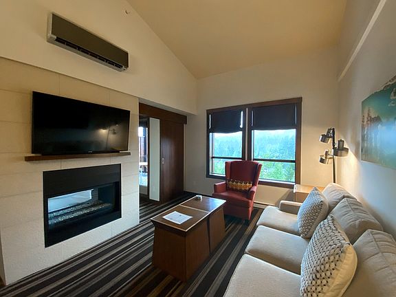 Enjoy space and views from this one bedroom shared-ownership penthouse apartment at Evolution Creekside. Offering vaulted ceilings and southwest views, owners and guests will enjoy all the comforts of home. With room for 4 adults, your apartment comes with a full kitchen, in-suite washer/dryer, AC, gas fireplace and an owners locker. Amenities at Evolution include outdoor heated pool, two hot tubs, steam room, sauna, gym, theatre, games room and ski locker. Evolution is a pet friendly Quartershare that gives owners 1 week of use each month and maintenance/HOA fee includes all utilities, internet/cable, property tax, building and contents insurance, snow clearing/landscaping and contingency funding.