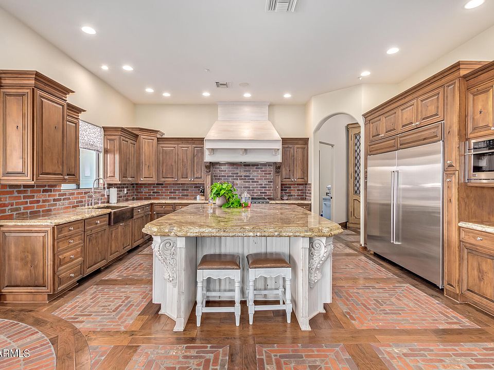 Incredible Custom Estate situated in the prestigious community of Villa Tuscano. Enter your private gate to a motor-court that has parking for 6 cars & RV gate. The elegant but comfortable floor plan includes a formal living area that looks out to a lush backyard. Exquisite one of a kind wood & brick flooring throughout the home. Don't miss the private formal dining room perfect for large parties or intimate dinners. Wait until you see the kitchen and family room, they are perfect for family gatherings, large windows that look out to the pool. Entertain your guests in the Chef's eat-in kitchen that comes with SS appliances, 2 sinks, recessed lighting, Ice maker, warming drawer, cabinets with crown moulding, a huge walk-in Pantry and a large island with a breakfast bar Enjoy a movie in the massive Theatre Room. 4 bedrooms in the main home and two in the 1175 sq ft Casita which has a kitchen, family room & 2 ensuite bedrooms, perfect for guest, or kids coming home. The Master suite in the main home has a sitting area w/ fireplace & patio access, and a lavish ensuite Bathroom with 2 vanities, tub, walk-in closet w/ enclosed cabinetry & stacked W/D. 3 other bedrooms have ensuite bathrooms, all private on the other side of the home. Incredible backyard is a dream come true for any entertainer, providing a covered patio, grassy areas, citrus trees, a Ramada with built-in BBQ, and a refreshing pool/spa with water fall & rope swing. For you garage guys there is a 2 car garage and a 4 car with a storage room to store all your tools and toys, plus the RV gate for your trailers. All centered in a wonderful Community with all the amenities you have been looking for.