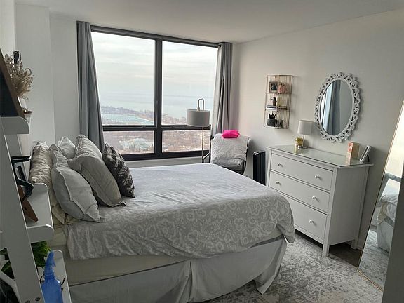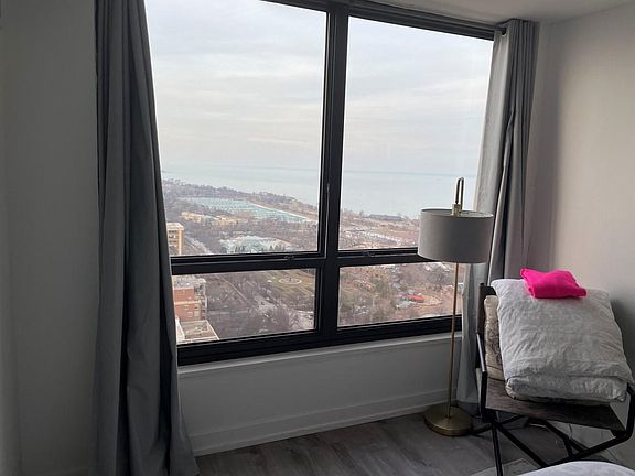 Luxurious penthouse includes sweeping city and lake views from every room. Custom kitchen showcases transitional white & gray cabinet design with white quartz countertops, gold fixtures, stainless steel appliances, and bar seating for 4 people. Wake up to stunning lake views from your spacious bedroom. Custom closets throughout. Full amenity building with new gym, pool, sauna, jacuzzi, tennis court and 24-hr doorman. Rent includes internet, cable, gas, heat & AC (only excludes electric). Video tour available on request. No pets, no smoking. Building charges move-in/out fee.