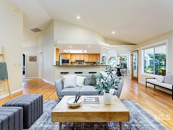 A rare opportunity for single level living in Boise's premier foothills location, Somerset Ridge. Nestled within the lower section of Somerset, this elegant and quality-built residence is cradled by beautiful landscape on a quarter acre. Ideal for downsizing without compromising in luxury or elbow room, this well-designed layout sets the framework for a wonderful residential experience with hardwood floors. Elegant formal living and dining spaces are set in their own wing, lined with generous multi-light windows. A spacious great room is accentuated by soaring vaulted ceilings and scores of windows framing the vibrant garden setting. The sizeable gourmet kitchen features built-in appliances, granite countertops, ample cabinetry storage, long raised breakfast bar, and is illuminated with skylights. The bedrooms are set away in their own wing, including a marvelous primary suite.