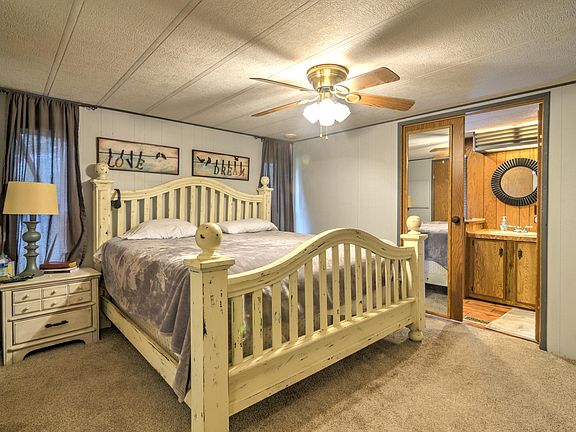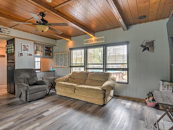 This is a Gem on Wildrose! Are you looking for a great home, 3 bedrooms, 2 bathrooms, a huge garage, gazebo & a pool? This is it on Wild Rose!! Upgraded appliances are beautiful, along with new vinyl plank flooring and new carpeting in the bedrooms, makes this home feel warm & welcoming. The spacious kitchen flows right into the living room and the 3rd bedroom or bonus room is off the laundry area, so you can make it a bedroom, Family Room, or TV-Media space -- whatever you dream it be. The main bathroom has a soaker tub and walk in shower, and the main bedroom has large closet space. The home comes with 4 lots -ALL FENCED IN- just about 1/2 acre of land that you'll enjoy the play area, horseshoe pit, the pool/gazebo area and lots of mature trees for shade and beautification -Bring your favorite hammock and enjoy the day! This manufactured home is pet friendly with a fenced yard, your pets will love the space! Don't forget to see the Huge 25'x30' garage with the workshop inside, several of the workbenches will stay so you can bring your tools! The garage holds two cars, or long trailers for a boat, there is so much room, the possibilities are right there to create your own slice of Heaven. The driveway is paved and plenty of parking for cars, boats, RV - You have the space to enjoy! The pool is ready for summer so all you have to do is bring your towel!! You are close to Branson with all the shopping, theatres and fun things to do at the Landing, but retreat back to Wildrose anytime you want to relax! Schedule a showing and check this out! It's so affordable- that's why its the Gem on Wildrose.