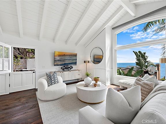 Experience beach living in this stunning Hamptons-style home, situated in the coveted Woods Cove of Laguna Beach with ocean and Catalina views. Some features include hardwood flooring, cathedral vaulted ceilings, oversized windows, and French doors. The main level is designed for entertaining and has a gourmet kitchen equipped stainless steel appliances and plenty of storage. The dining area opens up to the adjoining balcony, which also presents captivating sunset vistas. As you step into the spacious formal living room, your gaze is immediately drawn to an awe-inspiring panoramic window that frames the endless beauty of the ocean. Connected to the living room is a cozy fireside den, offering an inviting ambiance to unwind by the crackling fire and savor your favorite beverage in a truly captivating setting. There are two bedrooms and two bathrooms on the main level with views of the back patio and one of the bedrooms opens up to the back patio. Indulge in the luxurious retreat on the top level, offering breathtaking ocean and Catalina views from the primary suite, a walk in closet, and a fireplace. This private oasis features a secluded viewing deck where you can immerse yourself in the mesmerizing vistas of the sparkling ocean and the enchanting Catalina Island. Prepare to be pampered in the En-suite bath, which boasts dual sinks, a separate shower with multiple shower heads, and an oversized soaking tub. The lowest level offers an expansive and versatile space that can function as a family room, flex room, or second suite. The lower level also has a full bathroom, a spacious bonus room, and a convenient laundry room and a wet bar. The lower level opens up to a larger patio with easy access to beach. The property boasts a gated motor court and a one-car garage, ensuring both security and ease of access. Enjoy the soothing melody of crashing waves and the refreshing sea breeze in this magnificent home where luxury, natural beauty, and coastal charm converge seamlessly.