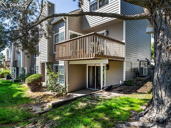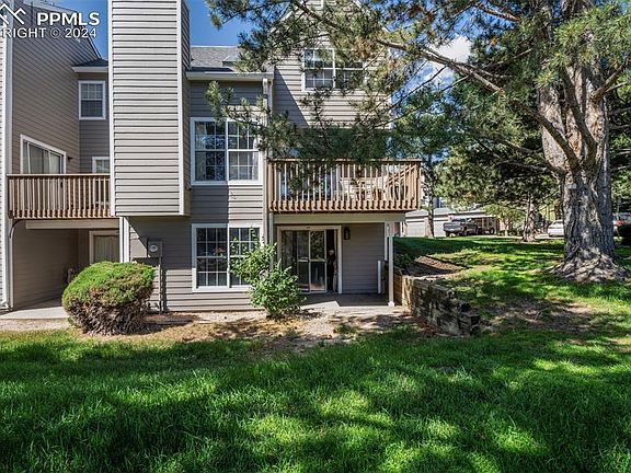 In beautiful condition, this end unit townhome is situated in a unique quiet and central location. The open living room has newer luxury vinyl flooring, vaulted ceilings, upgraded hand rails, wainscoting and custom tiled gas fireplace. Living room and dining room walk out to the wood deck for great indoor/outdoor flow. Bright kitchen with stainless appliances, 5 burner stovetop, glass tile backsplash, and newer cabinets and pantry for extra storage. Convenient half bath with custom tile work completes the main level. The upstairs has two master suites each with their own full bath. The newly remodeled basement has a bedroom, beautiful 3/4 bath and a spacious family room with built-ins and a counter making perfect place for house guests, a family member or a tenant. The basement family room walks out to a covered back patio. Both the wood deck and patio are nestled in the trees for extra privacy. Short distance to parks and schools. Easy access to N Academy Blvd and local amenities.