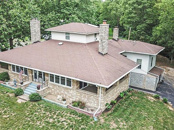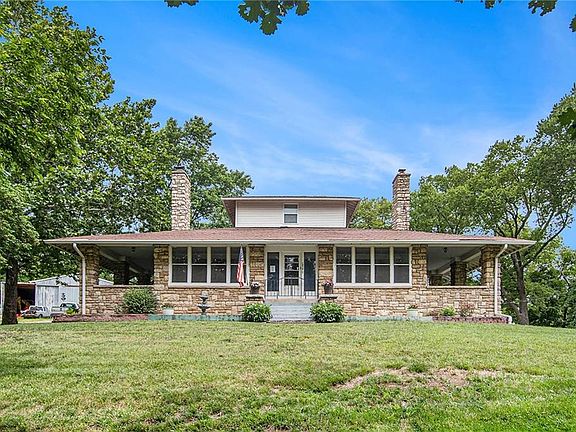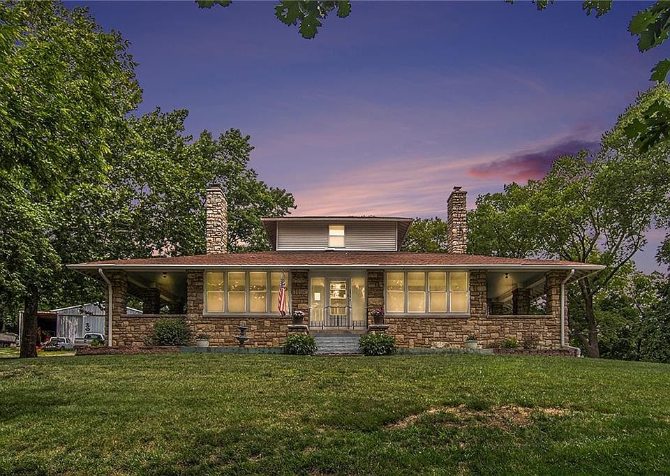 Unique opportunity to own a well-loved 1918 home on 4.42 acres within Liberty city limits. Long drive to a stone home nestled on the hill. Greeted onto three covered porches, one being fully enclosed. Walk into the front door into a cozy entry with a hearth room/seating room to the left with a custom-built stone fireplace. Head into a secondary living room with an identical fireplace. Wrap around into a formal dining room, moving through a pantry,buffet area into an updated kitchen. The kitchen boasts modern amenities including granite countertops, tin backsplash, and stainless steel appliances. The main level bedroom, two full bathrooms, and a laundry room complete the first floor. The second level hosts a second bedroom and half bath. The Backdoor walks out onto a patio area. 50x50 outbuilding w/6-foot overhang w/electricity & water. 2 attached garages to home. Newer windows, HVAC, water hear, & radon mitigation system. Custom wood work, original hardwood floors, and so much more.