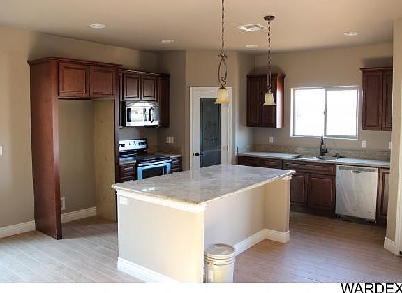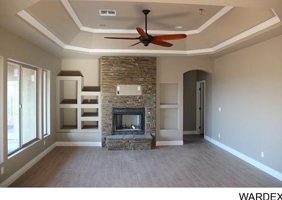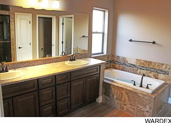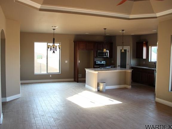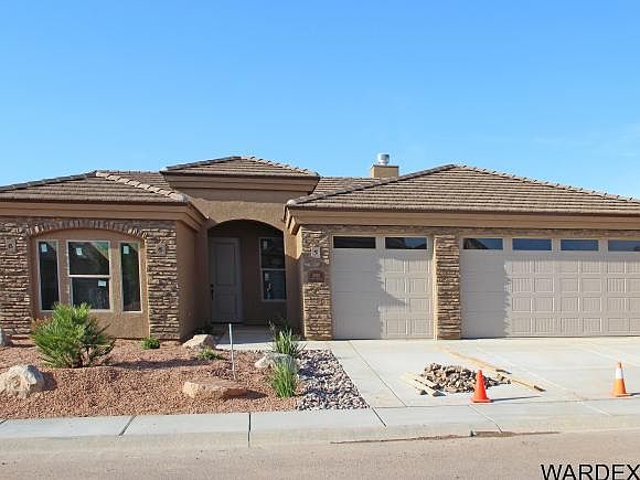 Beautiful new custom home in the only master planned community in central Kingman. Custom finishes include crown molding, elegant maple cabinetry, beautiful granite counters, custom walk-in shower w/ separate whirlpool tub in master, designer fans, Moen plumbing fixtures, stainless steel appliances, RV parking. Energy saving features include upgraded insulation, Low-E windows, hot water recirculating pump. Low maintenance features such as tile roof, stucco eaves, elastomeric paint, front & back landscaping and more