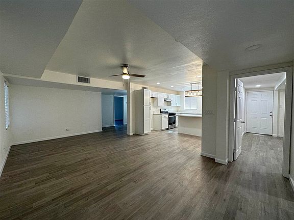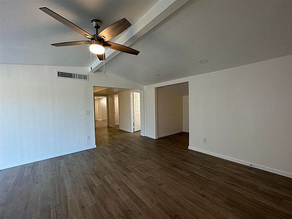 This 3 bedroom 2 bath Completely remodeled home is Spectacular! You have to come see the changes. All new Stuco, sunscreens and concrete. New rock and artificial turf. All new Electrical, from the outlets and receptacles to the lighting, ceiling fans. All new modern laminate and tile flooring, blinds. Enter in through the wide open living room with an extra room for an office or play room. Kitchen has new cabinets and quarts counters, gas stove. Opens up to the dining room or could be family room as well.