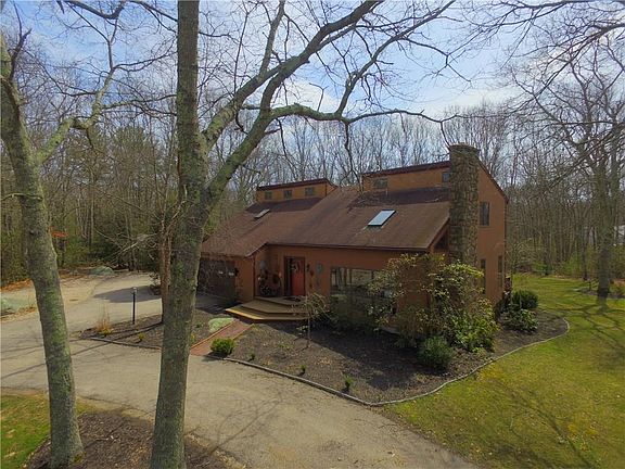 A hidden treasure of a home, built on over 6 acres of land with a well maintained 2 acre house lot with lush lawn, mature plantings and a huge private deck for entertaining surrounded by the remaining wooded site. Also, this home is surrounded by over 300 acres of undeveloped private land, but with easy access to Rte. 2 and 138 making travel to schools, trains, shopping, dining and beaches a breeze. This exclusive spot is one of only a few still found in South Kingstown, one of the top 5 school districts in the state, and conveniently next to a popular neighborhood if you choose to visit. This custom home was built with cedar siding, 6" construction, 12-16' vaulted ceilings, wood and tile floors, huge picture windows and a stone fireplace with a hand hewed rustic mantel which is breathtaking and is the first thing you see as you enter. What you don't see at first, but is worth the wait is the 60" deck which is perfect for entertaining for 1 to 100. Recently updated bathrooms and kitchen, full basement with side entrance, 3 bedrooms with vaulted ceilings and a bonus room off the master suite, which could be a huge additional walk-in closet, nursery, office, main floor laundry or any combination you choose, make this secluded home unique and a must see!