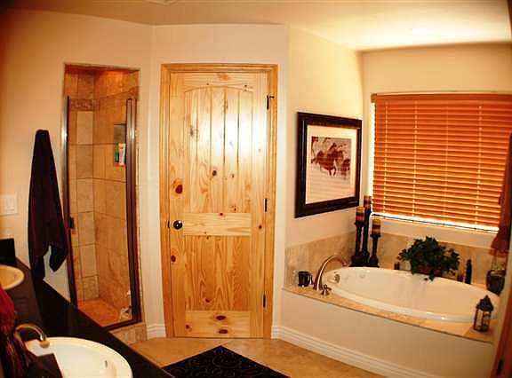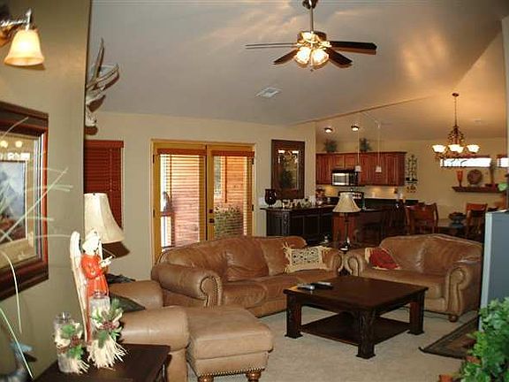 Classy home/cabin that shows like a model! Split floor plan, open great room with vaulted ceilings, stone faced fireplace w/custom mantel. Wood doors and trim, granite countertops, custom cabinets. Lg covered back deck w/ great room and master access. Plant shelves, wood blinds and ceiling fans in all rooms. Professional landscaping. Fourth bedroom could easily be office or den. Seller is a licensed real estate agent in AZ. Home is subject to a short sale.
