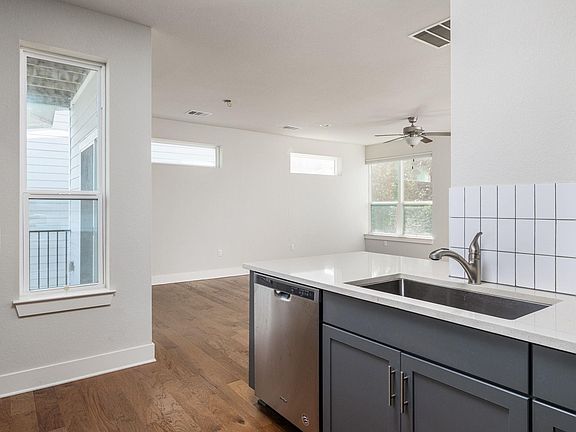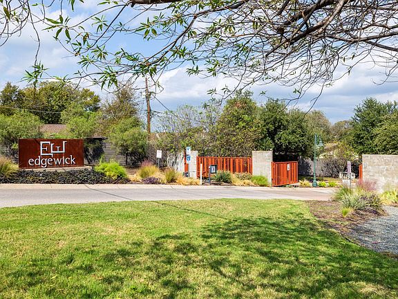 Rare detached modern condo in Edgewick featuring a true split-floor plan with a first-floor bedroom and interior garage access. This unique three-level design in a gated community just 1.8 miles from Downtown Austin offers balconies on every floor and gorgeous downtown skyline views. Home includes numerous builder upgrades and thoughtful owner-selected enhancements for an elevated finish throughout, including high-end hardwoods (no carpet). Refrigerator, washer, and dryer included. This 2BD/2.5BA layout provides thoughtful separation between living and private spaces ideal for working from home or hosting guests all within one of Austin's most desirable gated communities, offering a convenient lock-and-leave lifestyle just steps from Mabel Davis Park and trail access. Floor plan at a glance: Level 1 includes a private bedroom with full bath, interior access to the attached garage with additional storage, and a patio just off the bedroom ideal as a guest suite, office, or roommate space. Level 2 offers open-concept living, dining, and kitchen space with powder room, balcony, and abundant natural light for everyday living and entertaining. Level 3 features a private primary suite with ensuite bath, generous walk-in closet, and upper balcony with stunning Austin skyline views. Community amenities: Gated entry, resort-style pool, dog park and green space, and community walking paths. Prime location just minutes to Downtown Austin, Lady Bird Lake, the Boardwalk, Oracle campus, and East Austin dining, coffee shops, and neighborhood favorites.