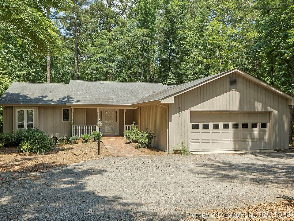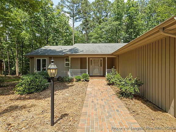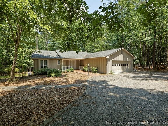 This wonderful ranch style home is located in the gated and golf community of Carolina Trace. Nestled in a private setting amongst the trees makes one feel like they are truly in nature. This home is located on a large lot, offers a circular driveway, massive deck that is perfect for entertaining, and a wonderful sun room. A nice sized living room with an easy flow into the kitchen. The eat in kitchen has plenty of counter space, real wood cabinets that could easily be painted if a more modern look is what you desire. Master bedroom has a nice sized walk-in closet and bathroom with garden tub and separate shower. 2 additional spacious bedrooms and full size bath is on the other side of the home, making this ranch a spilt floor plan. Huge sunroom surrounded with large sliders to offer plenty of natural light. This home is located in South Landing an offers a community pool and Bocci ball court.