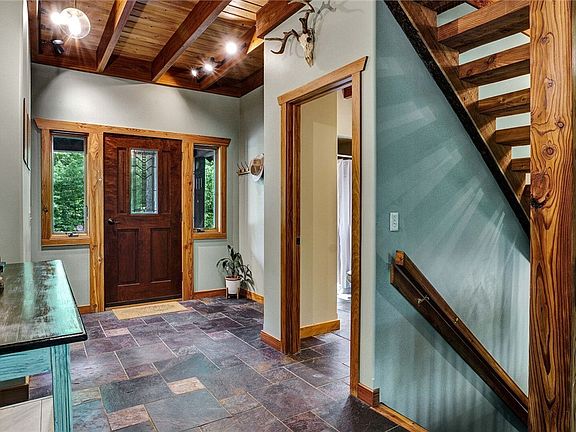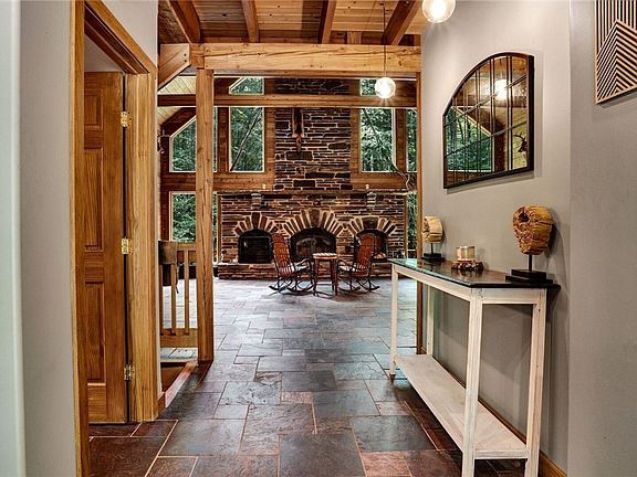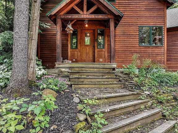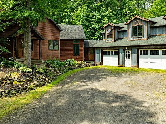 Discover a private retreat where a fully custom-built 3 bedroom, 3.5 bath residence is harmoniously integrated into its natural setting. Adjacent to 2100+ acres of state land, providing an uninterrupted connection with nature. Upon entering, the grandeur of custom woodwork throughout the home immediately captivates the senses. A majestic stone fireplace, the centerpiece of a spacious great room & lower family room, invites intimate gatherings and moments of serene reflection. Floor-to-ceiling windows & vaulted wood-beamed ceilings create an atmosphere of openness. The kitchen boasts custom cabinetry and a central island perfectly configured w/ stainless appliances. The primary suite is a sanctuary of its own, with 2 closets, and a full bath that promises a spa-like experience. Step into the large enclosed and screened sunroom for moments of tranquility in a versatile space that captures the essence of indoor-outdoor living. The lower level features 2 bedrooms & ba, a family room, and a large storage room with space to add another room. The driveway leads to a 3 car, two-story garage and includes a loft with space for storage or apartment. Negotiations take place on July 9th at Noon