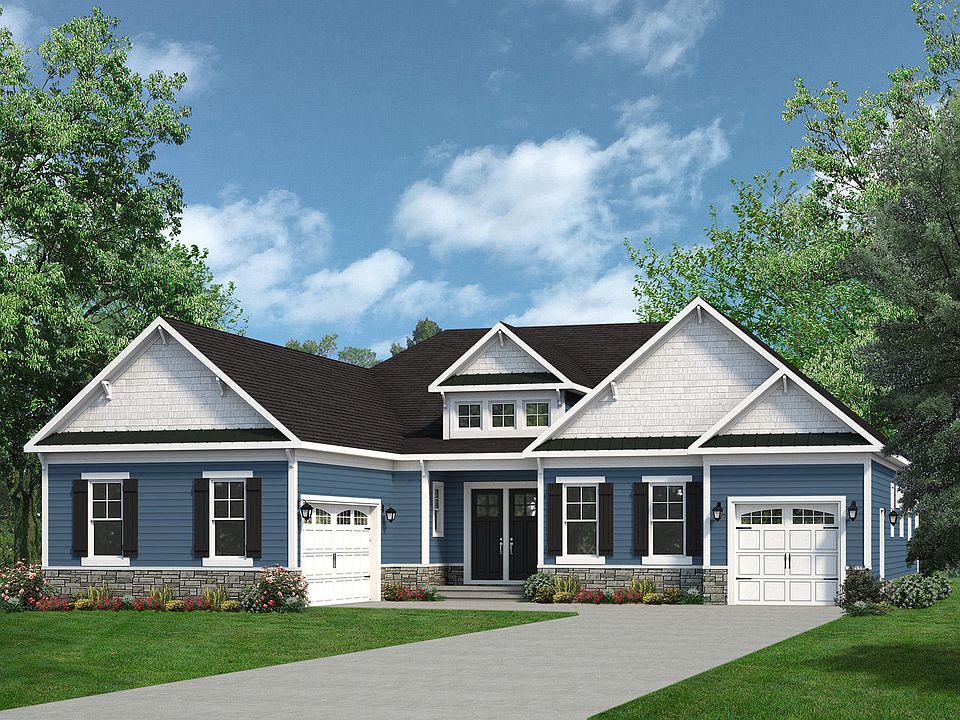 Chesapeake Homes newest floorplan-complete with generous sized master suite, 2 secondary bedrooms, 2.5 bathroom, dining room and great rooms both with coffered ceilings. gourmet kitchen with corner pantry, side load third car and also a single car garage on opposite side of home. One of a kind plan, open concept, beautiful views off your oversized back covered porch looking out onto one of the many fountains in Bridgewater.