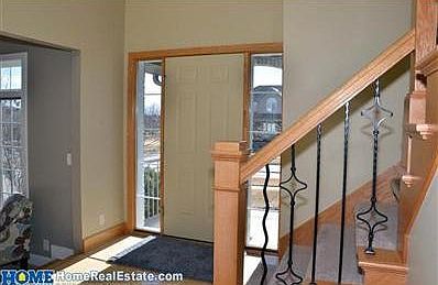 This spectacular home has curb appeal, inside class & style! A Nebr Green home w/geothermal features--91 GA H20 htr, air purifier, H20 softener, H20 purifier, & humidifier. Decor boasts-bamboo & cork floors, plush tan carpet, & tile BA floors. Clerestory+coffered ceilings, french windows, white 6-panel doors, art niches, quarter sawn oak cabinetry add pizzaz. Brushed nickel knobs & pulls, light fixtures accent it all. Deluxe baths feature master double sinks, whirlpool tub, tiled in shower. Kitchen has stainless steel appl, sit-up pendent-lighted bar, eating nook & door to rear deck & patios. Family Rm has FP w/brushed-nickel mosaic tile facade & built-in cabinets. Notice handy 2nd floor laundry. 3-car garage hosts a flr drain, H20 spigot & htr. Home wired w/security. Bsmt has Theatre Room wired for TV & sound + dry bar in adjacent Rm for other activities. Yard features grass, trees, shrubs, accent stones, 2 patios, deck and iron fence plus UGS. This home is glorious and worth a look!