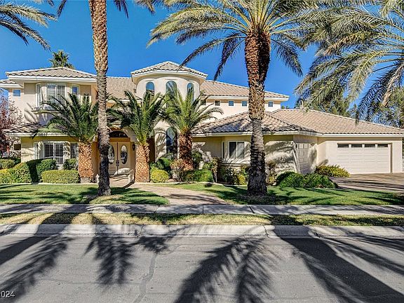 Nestled within the prestigious double guard-gated Grand Legacy Estates in Green Valley, this exceptional 5,352 sq. ft. custom golf course property defines luxury. Featuring 5 en-suite bedrooms and 7 bathrooms, this home is designed for sophisticated living. Upon entering the grand foyer, you're greeted by breathtaking golf course views. The formal dining & living areas are bright and open, complemented by a wet bar ideal for entertaining. The gourmet kitchen showcases new appliances, granite countertops, and an open-concept layout. Dual staircases lead to a loft space, while the expansive primary suite offers a dual-sided fireplace, strip views, a steam shower, and a spacious walk-in closet. The fully finished 4-car garage is a functional masterpiece, complete with epoxy flooring, custom storage, insulated doors, and a private restroom. Outside, the backyard offers panoramic golf course views, a covered patio, and a pool and spa, creating a serene retreat in the heart of Green Valley.