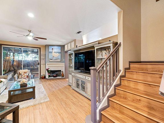 Welcome to this stunning coastal style 3 Beds & 3 Baths private northside home! At the entryway, as you step foot in this beautiful home, you will immediately notice a fabulous fireplace in the living room and lots of bright natural light coming from the numerous windows throughout the house. Kitchen with breakfast bar and newer appliances. The home has a low maintenance wash wood-like laminated,beautiful, blending flooring throughout the house and recessed lights. Upstairs are 3 BR and 2 full BA. The master BR has a large shower & separate tub for relaxing with large master closet. Downstairs the half bath for convenience. The private backyard features a covered patio area, offering tremendous privacy atmosphere, very inviting and great for entertaining plus incredible low maintenance. Home includes a 'paid for' solar energy system & water softener. The backyard is totally fenced for extra privacy and well equipped. This gated community has a very LOW HOA & NO MELLO ROOS TAXES. Prime location: home is close to amenities, restaurants, shopping, freeway access & town services. A must see One-of-a Kind Home!