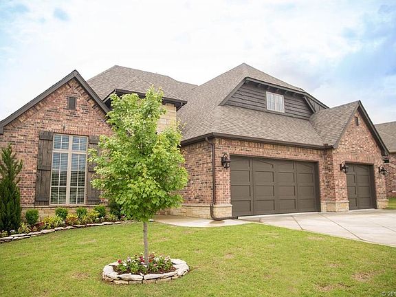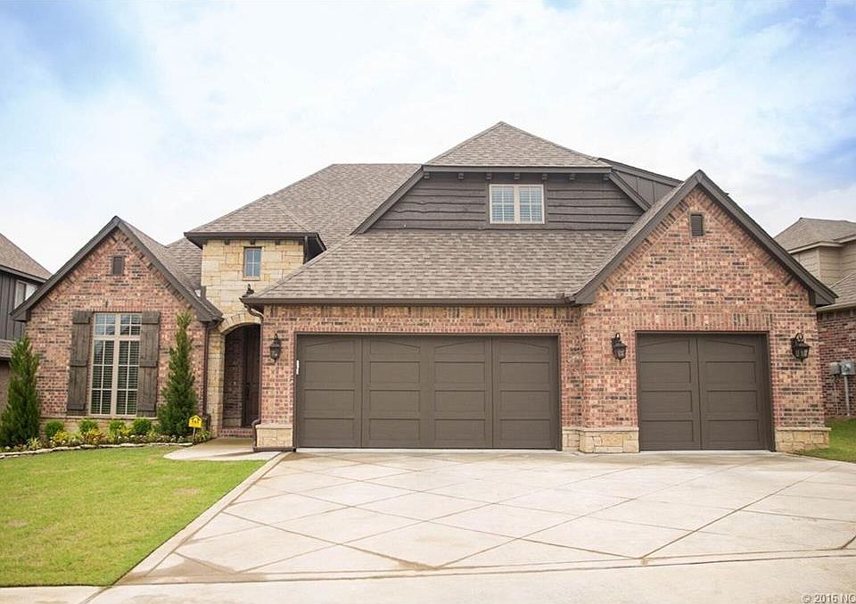 This home has all of the amenities. Extensive hand-scraped hardwoods, gourmet kitchen with a hot water-pot filler and a tongue & groove pine ceiling, large stone fireplace and special ceiling treatments. Gated Jenks community. Spacious, open floor plan. The master closet connects to the laundry room.