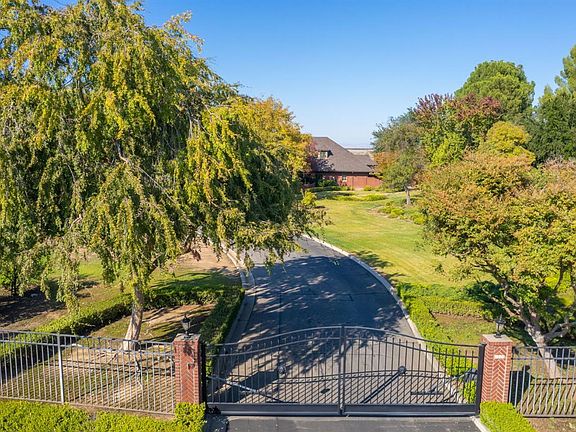 Perched majestically on 1.94 acres along the Fresno Bluffs, this one-of-a-kind estate captures panoramic views of the San Joaquin River and distant foothills. Set within a prestigious gated enclave and secured by its own entry gate, the property offers exceptional privacy, tranquility, and sophistication. Mature landscaping, timeless architecture, and impeccable craftsmanship create a private retreat that embodies the essence of refined living. A grand entryway welcomes you with parquet-style hardwood floors showcasing intricate geometric detailing and rich tones that set an elegant tone throughout the 6,994 sq. ft. residence. Soaring ceilings and expansive windows flood the interior with natural light, highlighting every curated detail. The formal living and dining rooms reflect an era when elegance was an art formperfect for intimate gatherings or grand entertaining. The gourmet kitchen features expansive granite countertops, custom cabinetry, and premium built-in appliances that speak to the home's exceptional quality. An inviting breakfast nook overlooks the backyard, while a butler's pantry, large laundry room, and direct access to the four-car tandem garage with workshop add everyday practicality. The family room exudes warmth and grandeur with wood-beamed vaulted ceilings, a brick fireplace, and a built-in wet bar, all enhanced by floor-to-ceiling windows framing breathtaking bluff and river views. The main-floor primary suite is a private sanctuary with serene river vistas, dual walk-in closets, and a spa-inspired marble bathroom featuring a soaking tub and oversized shower, all bathed in natural light. A stately home office with custom wood paneling, built-ins, and a fireplace offers a refined workspace with a tranquil bluff side view. Upstairs, three spacious bedrooms each feature a private balcony, en-suite bath, and walk-in closet, while the game room serves as a dramatic centerpiece for leisure and entertaining with vaulted ceilings, a fireplace, wet bar, and custom pool table. Outdoors, the estate lives like a private resorta sparkling pool, manicured lawns, and covered outdoor kitchen with bath and changing room provide the perfect setting for year-round gatherings. Solar panels, new carpet, and fresh paint enhance comfort and sustainability. Solar panels, new carpet, and fresh paint enhance comfort and sustainability. This remarkable Fresno bluff estate is more than a home-it's a statement of style, craftsmanship, and timeless luxury.