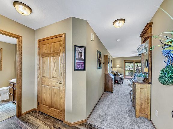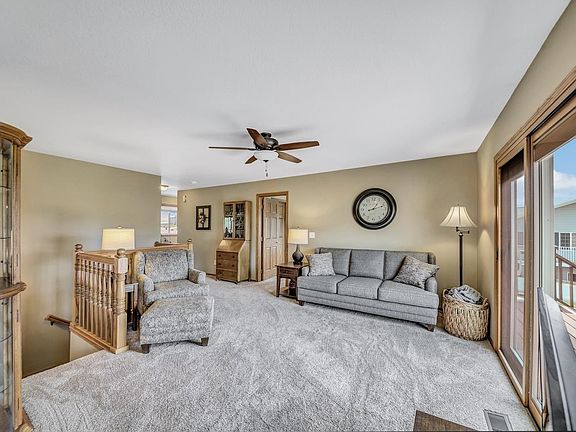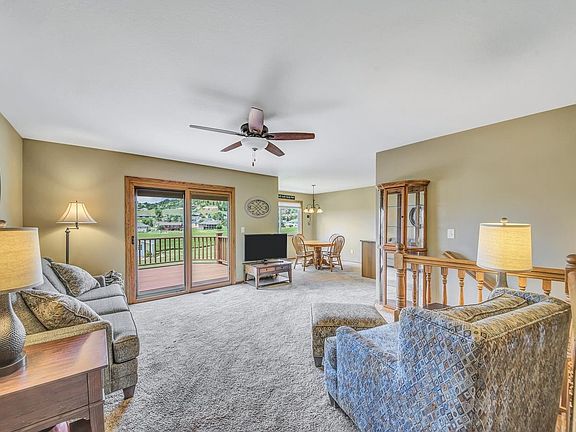 Call or Text Listing Agent - Kari Engen - The Real Estate Center of Spearfish - 605-641-0670 for more information. Quality built townhome located in Sandstone Hills with views of Crow Peak and back yard opens to green space. Front porch invites you into the 3 bedroom, 2 1/2 bathroom home featuring vaulted ceiling, dining and living room overlooks nicely landscaped yard and green space. The kitchen has granite counters, ample cabinets, gas stove and a pantry. Main floor laundry has a sink, upper cabinets and provides additional storage. Primary bedroom has a large walk-in closet with built in organizer, ensuite features a tile walk in shower, heated floor and linen cabinet. Lower level has daylight windows, fireplace in the family room and a 17x9 storage area with built in cabinets. Trex decking, heated garage, updated Pella windows, newer blinds, reverse osmosis system, water softener, humidifier, appliances only 2 years old. Enjoy carefree living as the HOA maintains the yard and takes care of the snow removal for $135/month and $1129.75/year for exterior insurance. Your days and evenings can be spent on the front porch or the spacious back deck, both provide great views! The yard is landscaped with curbing, perennials and a shed with electricity for additional storage. Buyer is responsible for verifying all information on this MLS document.