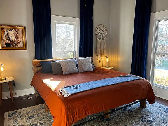 Charming farmhouse nestled on Jemerson Creek Rd in Hartsburg, MO, offering rustic charm with modern amenities. Spacious interiors and picturesque views create a warm and inviting atmosphere. Enjoy the tranquility of country living while being conveniently located. A perfect blend of comfort and character awaits in this farmhouse retreat. Step into a thoughtfully designed interior that seamlessly combines classic farmhouse charm with contemporary amenities. The spacious living areas are adorned with natural light, creating a warm and inviting atmosphere. The kitchen boasts modern appliances and ample counter space, making it a delightful space for culinary enthusiasts. With multiple bedrooms, the farmhouse provides comfortable accommodation for family and guests. The outdoor space is a highlight, featuring 170 acres with miles of trails and a picturesque setting. Enjoy relaxing moments on the front porch or hosting gatherings in the backyard. We have a small swimming pond nearby with a little beach. As it is fed by both rain and a little spring, the water level depends on how much rain we've gotten. You can also swim in the nearby beautiful Hart Creek to cool down or rinse off. We provide towels. Located adjacent to the 600+ acre Hart Creek Conservation area, this farmhouse is a haven for nature lovers and those seeking a slower pace of life. The property's proximity to local amenities and attractions adds convenience to its idyllic setting. Whether you're looking for a place to gather family and friends or a quiet weekend getaway, this 1906 Farmhouse is the perfect place. The farmhouse is about a mile from Hartsburg where guests can enjoy The Hitching Post, a cherished local bar, or The Burg, a restaurant and live music venue open Thursday through Saturday, and about 5 miles from Ashland, home of the Dandy Lion Internet cafe, restaurant and coffee shop, Moser's Grocery, and several great restaurants. Guests have keyless access to the entire farmhouse. There are an additional two rental cabins situated on the 170-acre property, so farmhouse guests may encounter cabin guests during hikes on the property. During the winter months, when leaves have dropped, one of the other cabins is visible from the back deck. No smoking and absolutely no parties. Pets are allowed with a $50 pet fee and agreement to the pet policy. All pets must be registered, and failure to register your pet will result in a $200 unauthorized pet fee. Unauthorized late checkouts are not allowed and will be billed at $25 per hour in hourly increments. Be respectful of our housekeeper's time and be sure to check out on time.
