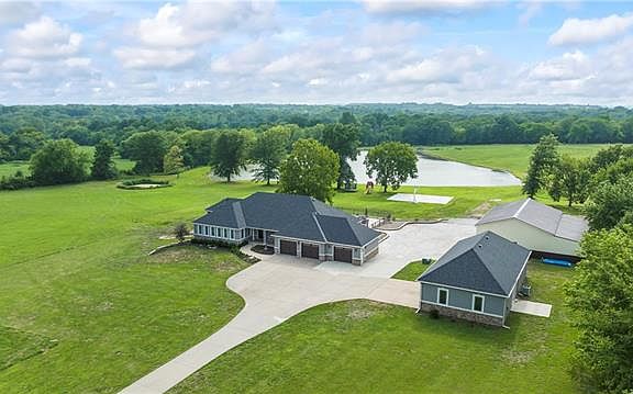 Privacy Privacy Privacy! Don't miss this gated oasis that provides all the privacy a person could ask for. This home has an incredible high end design powered by stunning views of your surrounding acreage makes this ranch style home truly one of a kind! Sitting on just over 23 completely fenced acres this top to bottom renovated 5 bedroom, 3 1/2 bath home offers all the luxuries of country living with modern updates. Did I mention a 2 bedroom, 2 bath guest house that holds a detached 2 car garage for the main house! The full, walk out basement has been completely finished and features an additional bedroom, full bath, wet bar, and game room! With a private lake on the property that is fully stocked with catfish, bass, and crappie for all of your fishing pleasures! Large shop measuring 40X60, is perfect for your hobbies and even boasts of a 14X60 lean to for that RV or trailer of yours! Step out to a private oasis in your backyard, featuring an inground salt water pool, large patio, covered outdoor kitchen, screened-in side porch, hot tub and so much more!