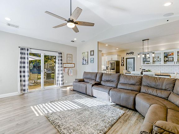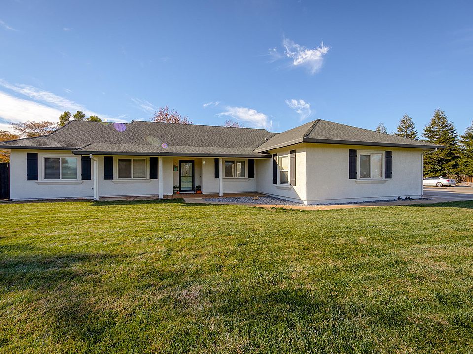 A country feel, right in town! Situated perfectly at the very end of the road with zero traffic, your family can enjoy your 1.5 Acres of paradise and be minutes to every convenience. Wow! You will absolutely love the fresh modern farmhouse style of this gorgeous kitchen, with granitecounters, white tile backsplash, Stainless appliances, Pantry, and so much more. Enjoy open style living, tall vaulted ceilings, a split floor plan, 4 Bedrooms, 2 Baths, PLUS office or home study room. Also has updated LED CAN lighting and Luxury Vinyl flooring. A large 2-car garage, RV parking, and an awesome big backyard w/ patio and pergola for summer BBQ's. Plus,Awesome Cherry & Peach Trees! The additional acreage in front even has a dirt bike track for the kids, and is the perfect spot for your shop