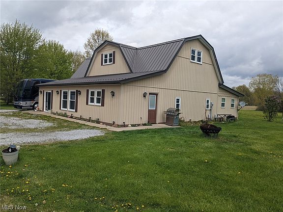 Spacious country home in Southern Lorain County's quiet Brighton Township. This 4 bedroom home on 7.6 acres has lots to offer! The large eat in kitchen has a vaulted ceiling and plenty of cabinets and counter space. The master bedroom has an adjacent bonus area, perfect for a work out room or could be converted into a nice family room The master bath features a raised twin whirlpool tub, his and her sinks and commodes, and a walk in shower. The second first-floor bed room has an outside entrance plus an adjacent bonus room which could serve as an additional living suite. The second level features two nice sized bedrooms and an additional bonus room, all awaits your finishing touches. The home is nearly 250 feet off the road, allowing a large yard with many mature trees and providing ample sunny areas for the vegetable garden of your dreams! New roof, windows, and siding, plus a geothermal heating/cooling system are additional benefits of this property. Toward the rear of th