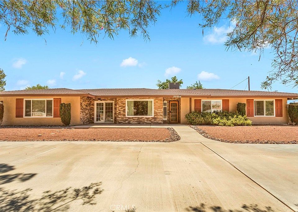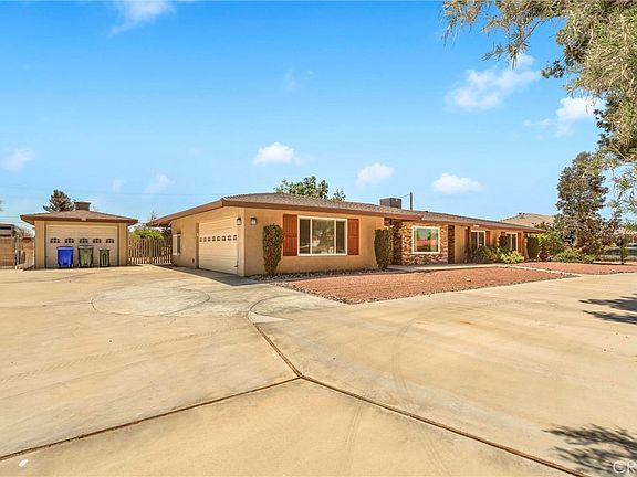 Beautifully crafted throughout, this incredible Apple Valley ranch-style home is ready for you to move in and enjoy! A horseshoe driveway dotted with towering mature trees greets you as you arrive. Past the covered porch, a captivating interior welcomes you with vibrant tones and plush carpeting, highlighting the open-concept entertainment areas. A mirrored accent wall adds depth to the chandelier-lit dining corner, adorned with glass sliders that open to the front yard. Abundant cabinetry, granite countertops, and a breakfast bar await you under the recessed lights of the kitchen’s elegant tray ceiling. After a sumptuous meal in the sunlit breakfast nook, grab a book and snuggle by the family room’s crackling fireplace. Awaken within the restful comforts of your private retreats, all graced with ample closets while a convenient ensuite with a shower/tub combo adjoins the primary suite. Sip your morning coffee and spend leisurely gatherings on the covered patio overlooking the generous, secluded backyard. Other inclusions include storage sheds, an attached 2-car garage, and RV parking. Make this gem yours before it slips you by!