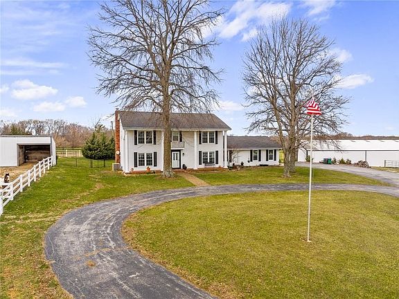 This picturesque 10-acre horse property features a long, tree-lined drive leading to a beautifully maintained two-story home. Inside, the home offers a warm and inviting atmosphere with remodeled bathrooms, a main-floor office with private entrance, mud room, eat-in kitchen with large walk-in pantry, Bosch gas range, granite counters, planning desk, plus a formal dining room, a wood-burning fireplace in the family room, cozy living room with French doors plus a great work-out area in the basement and tons of storage! The covered deck overlooks the fenced backyard and pasture, creating a peaceful outdoor space. Brand new furnace, new windows, new flooring, neutral colors, spotless!Designed for horse enthusiasts, the property boasts a 140' x 60' indoor arena, outdoor arena, and a well-equipped 7-stall barn with a workshop, wash rack, tack room, hay storage, Nelson automatic waterers. four pastures and six paddocks provide ample turnout with safe fencing. An additional 40' x 12' lean-to provides two more stalls with runs and space for 100 square bales. This exceptional property is ideal for horse owners, trainers, or anyone seeking a peaceful country setting with modern conveniences nearby. Additional 10 acres to the north is available. The home on 20 acres is listed for $1,050,000 (See MLS #2537132). Located less than one mile from the Ray-Pec high school and middle school. Easy access to 49 Hwy. Only 35 minutes to downtown KC. 2025-05-02