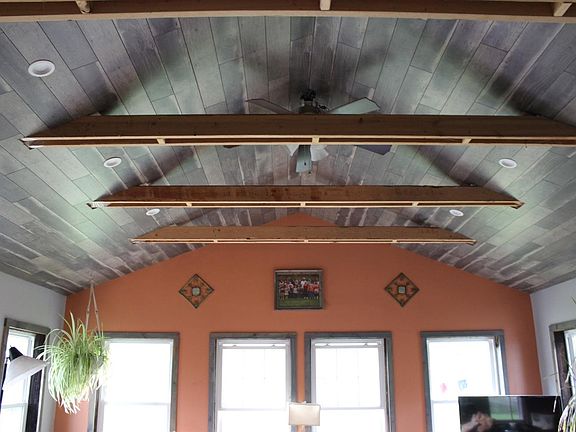 • Inside: Vaulted Ceiling, Beam Ceiling, Walk-In Closet(s), Built-Ins, Crown Molding, 9Ft + Ceiling, Skylight, Vinyl