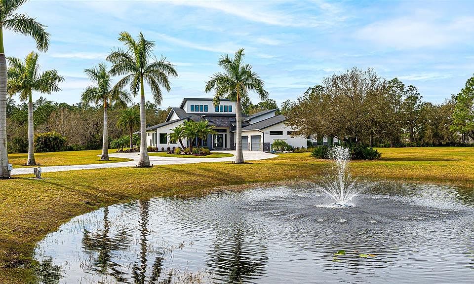 Step into the lap of luxury with this breathtaking Panther Ridge estate, where modern elegance meets the tranquility of a 10+ acre paradise. This 5-bedroom, 4.5-bath masterpiece boasts not only a 4-car garage but also a whopping 4,943 sq/ft of sheer opulence. Marvel at the grandeur of the 26' ceilings that greet you upon entering, creating a sense of space and airiness. The interior is adorned with luxurious finishes making every corner a feast for the eyes. The open floorplan seamlessly combines the family room, dining area, and kitchen into a functional living space that exudes warmth. As you explore, the owner's suite beckons with its high vaulted ceiling, large windows, and glass sliding doors that flood the room with natural light. Dual closets with custom built-ins provide ample storage, while the en suite bath is a spa-like retreat, featuring a seamless glass stand-alone shower, a separate tub, and a double vanity with custom European cabinetry and quartz countertops. The heart of the home, the kitchen, is a chef's dream come true. An oversized island with custom dual-tone cabinetry and quartz counters sets the stage for culinary adventures. Luxury stainless steel appliances, including a side-by-side refrigerator, beverage fridge, wall oven, microwave, induction range, and hood, elevate the cooking experience to new heights. The guestrooms are no less impressive, with oversized windows and en suite full bathrooms offering both comfort and style. A large bonus room, complete with high ceilings, large windows, and sliders, provides additional versatile space for entertainment or relaxation. Step outside to the resort-style pool and outdoor living areas, where a lanai with an outdoor kitchen and fireplace seating area awaits. The oversized pool with a huge spa, sun shelf, and multiple seating areas create a haven for relaxation. A gas fire pit and spacious sundeck add to the allure of the outdoor oasis. This estate is not just about luxury; it's also designed for practicality and security. With a 32kw generator, hurricane-rated windows and doors, 10 independent HVAC zones, and home automation for lights, blinds, fans, and controls via mobile device or Alexa, it seamlessly blends modern convenience with timeless elegance. Welcome home to a life of unparalleled comfort and style!