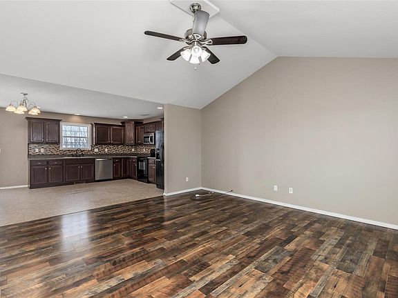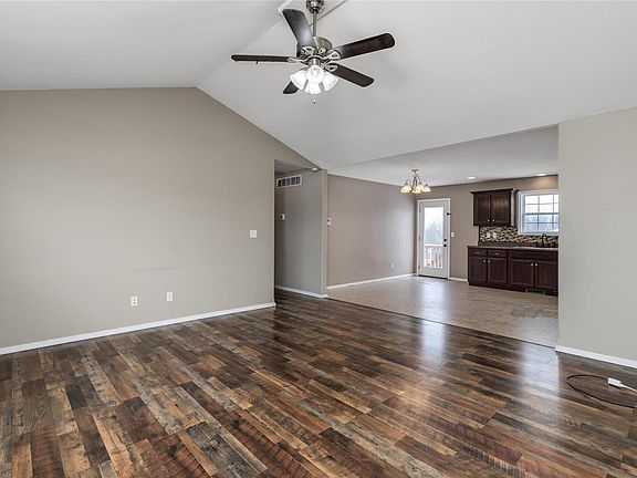 If you are looking for a MOVE-IN READY home, let this corner property sit at the top of your list! Enter through the front door up to the living room, where solid flooring, vaulted ceiling and easy access to the dining and kitchen areas make entertaining a breeze! Fashionable backsplash compliments the dark wood cabinets, making a striking look in a well lit space! Access to the deck is provided in the dining room. Back inside, head down the hall to find a common bathroom, two bedrooms and the primary suite, complete with tub/shower combo and double sink. Downstairs, a sizable family room makes a great spot to retreat and play! Laundry space is conveniently located off the family room. One additional bedroom and one additional bathroom round out the lower level. Garage includes parking for two vehicles, along with additional workshop/hobby space. HVAC system is new!
