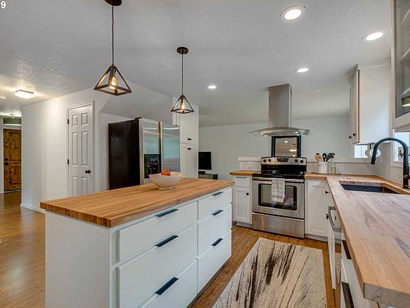 - Appliances: Dishwasher, Range Hood, Stainless Steel Appliance(s), Free-Standing Range, Island
