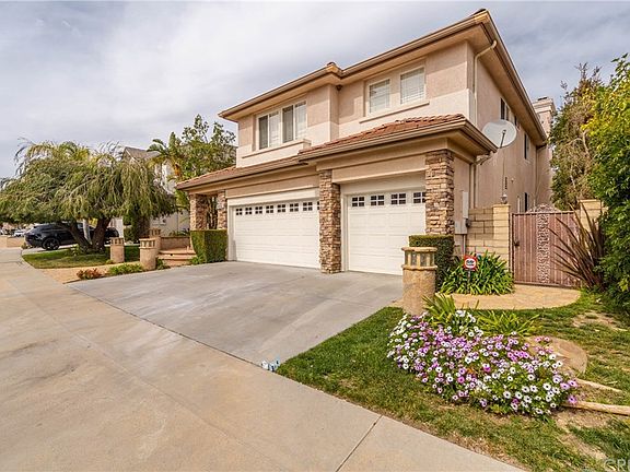Welcome to this 4 bed and 4 bath home featuring a beautiful fusion of space, style and easy living, this quality home situated in sought after Porter Ranch is presented in pristine condition. This 3,300 sqft home offers marble flooring through the entire first floor, a living room with 20 ft tall ceilings to accentuate the light & space and custom-built window treatments. The kitchen has the standard inclusions of granite & marble counter tops and stainless steel appliances including 6 burner gas cooktop, trash compactor, built-in refrigerator, island, double oven, and dishwasher. Perfectly adjacent to the kitchen is the breakfast nook that overlooks the backyard. The family room is bathed in natural light from a multitude of windows and features a cozy mantled fireplace. The master suite is perfectly positioned to provide privacy and offers a spacious parent's retreat with walk-in closet and a balcony overlooking the backyard. The BBQ area is ideal for entertaining with a built-in gas fire-pit and the yard is secure with a plush green grass area. Additional features include built-in speaker system throughout, fresh paint inside, dining room, wet bar with custom wrought iron door, wrought iron staircase, tile roofing and so much more! The ultimate lifestyle convenience with restaurants, fresh food outlets, shopping, park, and 118 freeway all within easy reach this is an attractive choice for families!