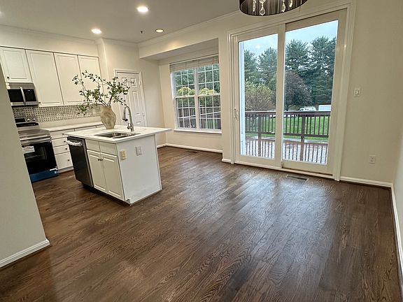 Welcome to this unique 4-bedroom luxury townhome featuring high ceilings and a versatile in-law suite on the main level, which can also serve as a spacious master bedroom with a full bathroom. This home beautifully blends modern features, such as drywall return windows, with traditional touches like crown molding throughout the living room and basement. This fully renovated home boasts all-new appliances, including new refrigerator, microwave, stove, dishwasher, washer, and dryer. Enjoy the elegance of three fully gutted bathrooms master bathroom, powder room, and a full bathroom on the upper level along with a recently renovated full bathroom on the main level. The living area features four large windows, providing abundant natural light and a designated space for a dining room. Step outside to the outdoor patio accessible from the kitchen, perfect for entertaining. The expansive kitchen is bathed in sunlight from high glass doors, offering ample space for a dining table, a cozy breakfast nook, a pantry, and island seating. The new quartz countertops add a touch of luxury. The basement includes a spacious room with a walkout to a covered patio, overlooking a lush backyard and open field ideal for relaxing or entertaining. With no carpet throughout, the home features new LVP flooring in the basement and bedrooms, complemented by beautiful real hardwood in the living areas. Freshly painted and move-in ready, this townhome is a true gem! Families will love the several parks within walking distance and a charming small creek nearby, making this the perfect home for those with kids. One year minimum (or 2 years) lease to start with a potential extension. Minimum credit score requirement of 600-750 No smoking allowed No Pets Tenant pays water& sewer, Electric. Tenant replaces HVAC Filter. Tenant is responsible for their own internet. Tenant is responsible for lawn maintenance. Owner pays for HOA