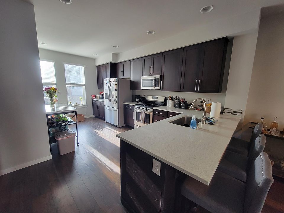 Discounted price! Come stay at this beautiful townhouse in North Lynnwood/South Everett. This contemporary home is 1488 sq ft, open concept, and very cozy. It is conveniently located near i-405 and i-5, 5 minutes from Ash Way Park & Ride, and 10 minutes from Alderwood Mall. It is within a safe, quiet, and family-friendly community. This spacious townhouse has 2 MASTER bedrooms with a full bathroom in each of them, providing a more privacy life to each bedroom. MORE DETAILS: - Attached garage (2 car tandem) - Driveway - Washer/dryer and refrigerator - Hardwood flooring - Quartz countertop - Bar seating - Across an off-leash dog park and playground park Contact me for further details and/or if interested! Last month's rent due at signing. Utilities not included. No smoking.