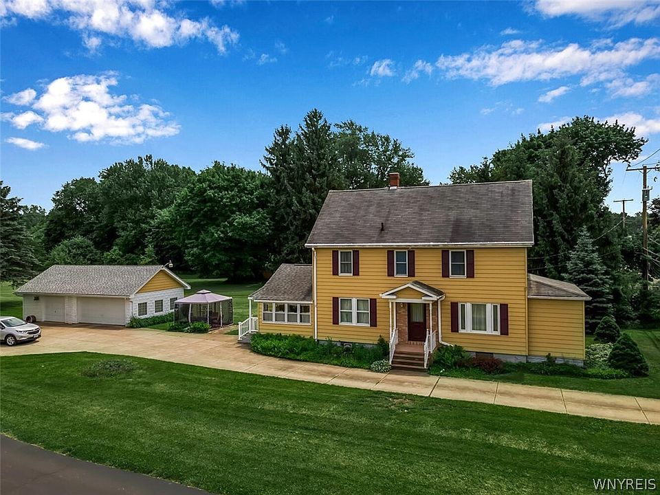 WELCOME HOME! Beautiful 5 bedroom, side entry, home in Elma, NY! This home has 3 levels of living & consists of 2400+ sq ft. The front foyer greets you with an amazing staircase & coat closet. Formal dining to the left & living room to the right. Window seat, built ins & French doors add to the character of this well kept home! There is a den right off the LR, which would be perfect for a home office or kids space. There is the cutest 1/2 bath on the 1st flr too. Kitchen has corian countertops, breakfast bar & pantry. Mudroom, bsmt access & enclosed porch off the back. 2nd floor has an awesome layout! Master is spacious & has great closet space! 2 more bdrms & 1 full bath on this level. 3rd floor has a full set of stairs up to it with 2 more bdrms. Each have closets & vaulted ceilings. Gorgeous lot has 2 parcels included in the sale price equals 1.11 acres! Great concrete driveway. 3 car detached garage with 2 year old roof on it. Additional shower in the basement. New septic was installed in 2014! Iroquois school district! Sq footage based on appraisal report. NO OFFER DEADLINE!! 2022-08-30