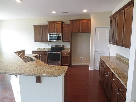 This home offers 3 bedrooms, 2.5 baths, an office and screened porch. Formal dining opens to a large family room with vaulted ceiling. Spacious Kitchen also features a morning room with bay window.Great split BR plan with fireplace, granite, stainless steel appliances, hardwood floors, tile baths, utility sink, staggered height kitchen cabinets with beautiful trim finishes in dining room and foyer. Memberships available to pool/clubhouse. Very close to Surfside Beach and convenient access to Coastal Grand Mall, Airport, grocery stores and Market Common.