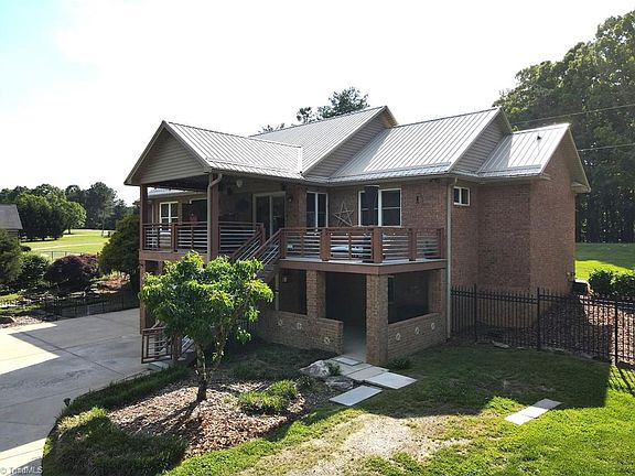 Exceptionally well maintained 3 bed/2 bath brick home next to Sauratown Mountain! Home has over 2,000 sq ft on the main with full basement, Granite Counter tops, open floor plan with vaulted ceilings in living room, kitchen and dining, tray ceiling in the primary, primary suite with shower and jetted tub, split floor plan, hardwood floors throughout, beautifully landscaped, koi pond, 2 tier deck, fenced back yard with gated entry. This is a beautiful home just outside the convenience of King. Come enjoy the peaceful country life!